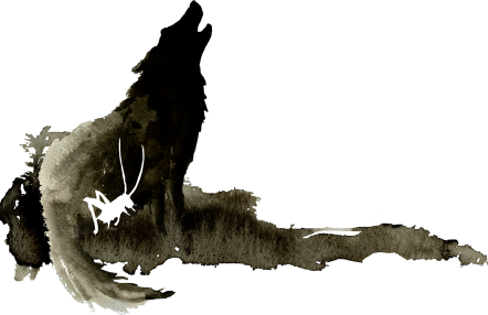 The wolf and the cricket depicted in the artwork serve as symbols of her two sons, and were rendered in the traditional Sumi ink style by her long-standing Japanese friend who bestowed her with the nickname "Tsuki."